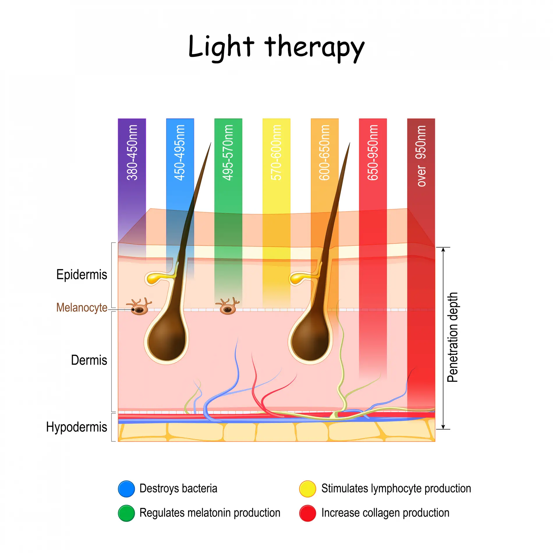 Le principe de la photobiomodulation repose sur l'interaction entre les photons (grains de lumière) et les photorécepteurs présents dans nos cellules. Lorsqu'une lumière de longueur d'onde spécifique, située entre 630 et 1 000 nm, pénètre les tissus, elle est absorbée par les mitochondries, les véritables "usines énergétiques" de nos cellules.